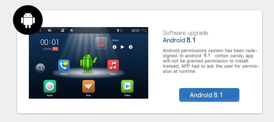 2 din Car Electronic autoradio Android 8.1car dvd player stereo GPS NavigationFor AUDIWIFI+Bluetooth+Radio+Quad 4 Core CPU+TV (Option) Language: English German French Italian Spanish Portuguese Russian Polish Turkish Arabic Korean Japanese Danish Dutch Swedish Chinese Hebrew and so on Free Gift: 1.Built in free map 2. Canbus 3. camera System: Pure Android 8.0OS : 1. CPU: T3 Cortext A7 Quad Core 1.2GHz 2. RAM: 2GB DDR3 3. ROM: 16GB Features: 1. Capacitive Multi-touch screen / Resolution HD 1024*600 2. Support Android App download and Google play store 3. Support HD 1080P+ 4. car dvd Built-in WIFI 5. Download phone book function, you can download contact information from your phone to this unit 6. Support Steering Wheel Control 7. Mirror link function .transfer information to the screen in your car monitor 8. Bluetooth Supports All Brands Cellphones,Phonebook Input,Music Playback,Supports Name Search By A-Z 9. Radio Tuner with RDS, 30 Preset Radio Stations (FM: 3*6, AM: 2*6) 10. Button light color adjustable.7 colors of button,freely change one to another 11. Multi-Languages: OSD Language: English/ Russian/ French/ German/ Spanish/ Italian/ Arabic/ Portuguese/Turkish/Thai/Polish/Hebrew etc 71 kinds language 12. Boot Logo: Select The Built-in 50 Kinds Of Auto LOGO 13. 3UI Design,you can switch the ui you want at any time 14. built-in microphone 15. built in GPS 16. Built in AV-Out (support connect all view to the headrest monitor) 17. Support Google Maps online Navigating, you can use GPS Navigating if you in Internet 18. Support Split Screen.The unit supports the operation of two programs on the screen simultaneously. (Note: some third-party apps do not support to work under split screen feature) . Optionalfeatures: 1. Support OBD II,Car diagnostic tool,you can know your car condition anywherethe(OBD (ELM327) is optional) 2. Support DVB-T T2/MPEG2/MPEG4/ISDB-T Box input (TV box optional) 3. Support DVR (optional) 4. Support TPMS (optional) 5. Support 3G Internet/4G Internet (3G /4G dongle optional) 6. Support Rear View Camera input (optional) 7. Support DAB+, Digital Audio Broadcasting (DAB box optional) WHATISINTHEPACKAGE: 1.ISOPowerCable(plugandplay)*2 2.RCACableA*1 3.RCACableB*1 4.GPSAntenna*1 5.USBCable*1 6.ExternalMicAdaptor*1 7.Canbus*1 8.Instruction*2 9.Built-inMap*1(Pressthe"GPS"or"Navi"buttoncanbeenter) 10.Disassemblekey*4 11.camera*1 About shipping: 1. EU warehouse dispatch to most of EU countries, usually it will arrive in 3-7 workdays. Germany and Poland usually will arrive in 3 workdays 2. Note: If your address is belong to these zip code , we only can send from China. Spain ZIP code: 35000-35999/38000-38999/51000-51999/52000-52999. Portugal ZIP code:9000-9999 3. Russia warehouse dispatch to 1, 2, 3, 4 area, usually it will arrive in 3-15 workdays. for this car dvd, if you don't sure it can fit to your car or not, please feel free to contact us. we will help you check. thanks OPTIONAL PRODUCTS: 1.Rear View Camera $5.7-10 https://www.aliexpress.com/store/product/Car-Rear-Camera-Backup-Auto-Parktronic-HD-Rearview-Reversing-Reverse-Camera-Butterfly-Design-Front-Rear-View/225774_32877798370.html?spm=2114.12010612.8148356.1.1a6f6f13KFDCAa 2.Parking Sensor $11 https://www.aliexpress.com/store/product/One-Set-Led-Parking-Sensor-Auto-Car-Detector-Parktronic-Display-Reverse-Backup-Radar-Monitor-System-with/225774_32906764918.html?spm=2114.12010612.8148356.1.42f943f7nOaG09 3.OBD $7.5 https://www.aliexpress.com/store/product/hot-sale-OBD-for-android-car-dvd/225774_32813688912.html?spm=2114.12010612.8148356.11.4c933e9eduC7Jb 4.DVR $19-80 https://www.aliexpress.com/store/group/DVR/225774_254833912.html?spm=2114.12010612.0.0.4c933e9ed7fNbP 5.3G dongle $32 https://www.aliexpress.com/store/product/E270-Unlocked-Mobile-Broadband-3G-Modem-Dongle-for-car-dvd/225774_32845102225.html?spm=2114.12010612.8148356.1.7a1666c7AGPWiP 6.4G gongle $42 https://www.aliexpress.com/store/product/Android-car-radio-for-4G-Dongle-4G-function/225774_32844528380.html?spm=2114.12010612.8148356.3.4fa666c7v8t5se 7.Digital TV box $53-112 https://www.aliexpress.com/store/group/Digital-TV/225774_254847602.html?spm=2114.12010612.0.0.4fa666c7SE7Z27 8.External Mic $5 https://www.aliexpress.com/store/product/Car-Stereo-Jack-Mini-Microphone-External-Mic-For-PC-Car-DVD-GPS-Player-Radio-Audio-Micro/225774_32812948372.html?spm=2114.12010612.8148356.1.77aa4f17QUopxs 9.Special power cable for Nissan Toyota and so on $8-11 https://www.aliexpress.com/store/group/Power-Cable/225774_256672671.html?spm=2114.12010612.0.0.77aa4f17fAntMc 10.DAB+ $27 https://www.aliexpress.com/store/product/DAB-module-and-antenna-for-android-car-radio/225774_32879688640.html?spm=2114.12010612.8148356.15.5ed35af8iaDLwX A.customs duties Note: buyer make the payment for the price,just include the product price and the shipping costs. not include the tax VAT,value add tax. the tax need to pay by buyer. if buyer donnot go to customs clearance lead to the goods return, return goods shipping cost pay by buyer. we will reduce return shipping cost,then refund you B.distributing order If one order includes more than two items, then we may arrange in a parcel.sent out together. C.Shipping ways Except Russia use J-NET, belarus use EMS, Brazil use EMS, Other country, we use the DHL, FEDEX, TNT. We will randomly choose this DHL, FEDEX, TNT three express company. If customers have special requirements, please leave a message in the order you need to select the express company.